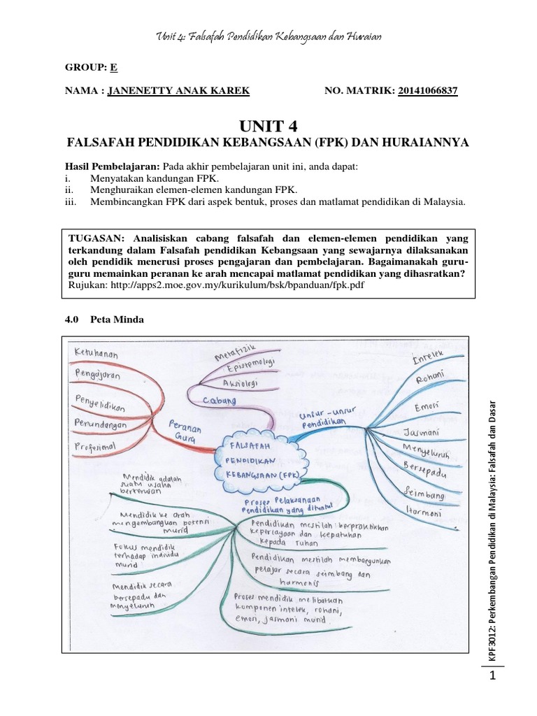 Kpf Unit 4 Unit 4 Falsafah Pendidikan Kebangsaan Dan Huraian Unit 4 Falsafah Pendidikan Kebangsaan Fpk Dan Huraiannya Tugasan Analisiskan Cabang Course Hero from www.coursehero.com Dengan adanya fpk, maka sistem pendidikan negara sebenarnya menganjakkan diri ke kedudukan terkehadapan dengan mengungkapkan secara jelas prinsip dan nilai asas yang mendasari. Use the download button below or simple online reader. Logika merupakan cabang filsafat yang menyelidiki lurus tidaknya suatu pemikiran kita. Pendidikan adalah teras kepada kehidupan yang sejahtera dan dinamik. Falsafah pendidikan kebangsaan (fpk) yang dahulunya disebut falsafah pendidikan negara (fpn), merupakan dasar pendidikan yang telah dilaksanakan di negara malaysia. Alhamdulillah, bersyukur ke atas ilahi dengan limpahan rahmat serta nikmat masa, nyawa, dan tenaga yang di anugerahakan kepada saya dapat juga saya menyiapkan tugasan ini dengan jayanya. Falsafah dari segi estimologi bermaksud cinta kepada pengentahuan atau hikmah. Falsafah pendidikan kebangsaan berasal daripada tiga perkataan, iaitu falsafah, pendidikan dan kebangsaan.