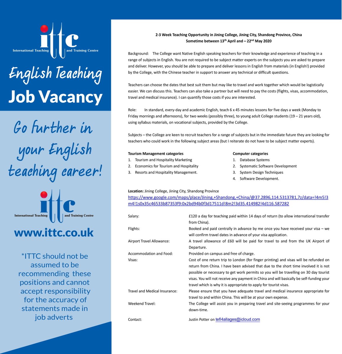 English Teacher Vacancy / Post your ad for free if you are offering esl and english teaching positions.
